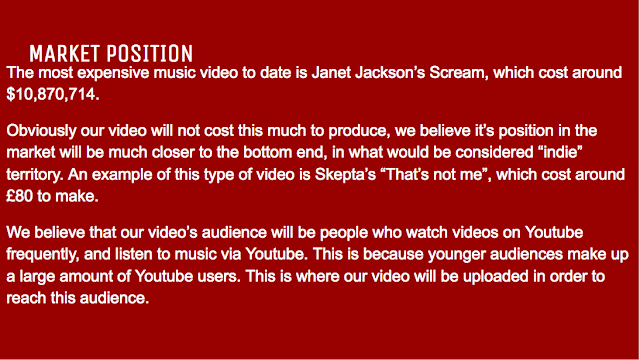 Our budget for the music video ‘Mac Miller, Object in the Mirror’ is not a big budget, we are planning to have a budget of £20 because we do not need to pay for any equipment because that has been provided to us from Long Road Sixth Form College, we also do not have to pay for any actors as we are only using one actor which is in our production group anyway. The only things we would need to pay for out of our budget is props to use in the video, we do not need to pay for the locations and sets that we are using to film in because we have checked with the owners of the locations who have given permission for us to use it for free.